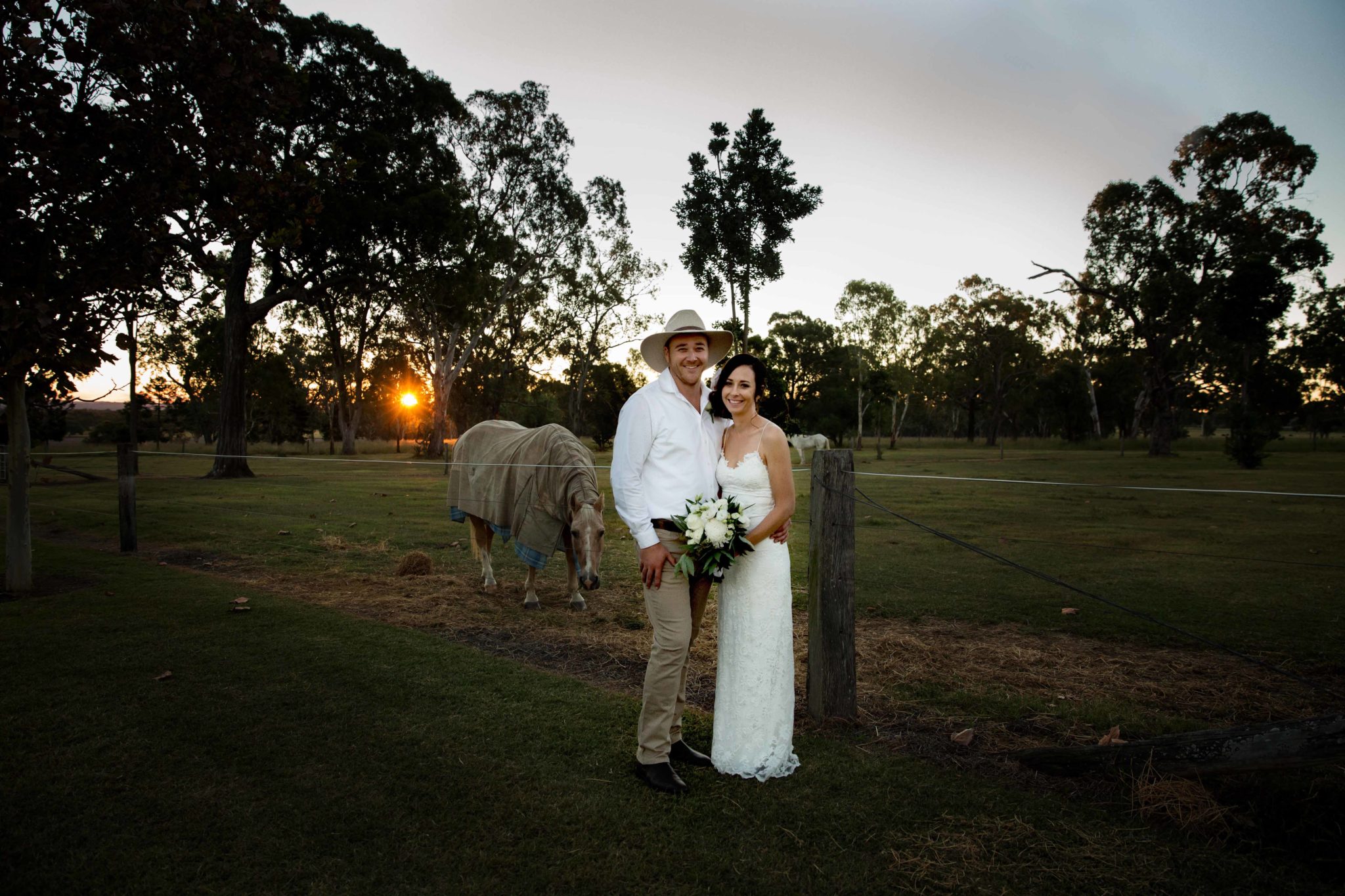 On a beautiful autumn day, at a cattle station between Warwick and Allora, Qld, James and Olivia were married. The skies were clear and the sun was shining as these two tied the knot in front a gathering of family and close friends.